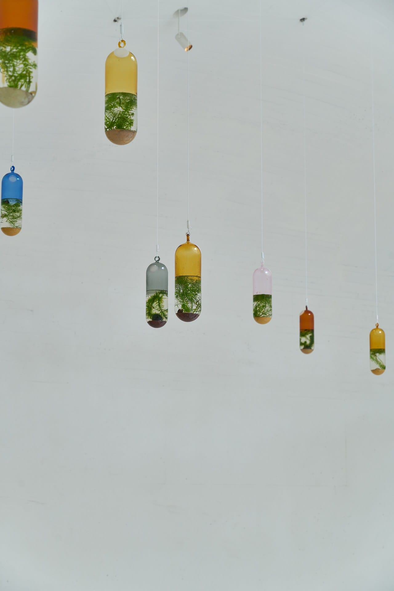 Nu ligt het UCCA Dune Art Museum niet om de hoek - ergens in Beidaihe, China - maar het werk van Max Hooper Schneider is er te zien. Ook bekend van deze fantastische neonwerken. Deze hangende pilletjes met plantjes erin gaan met de naam ‘Carnival of gestation’.
