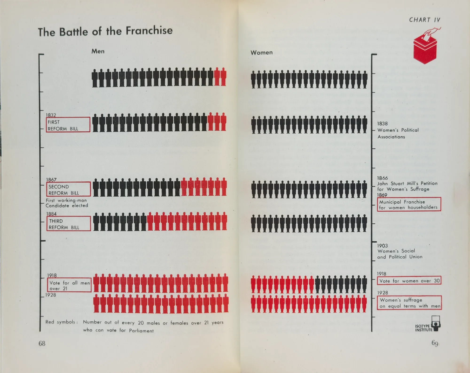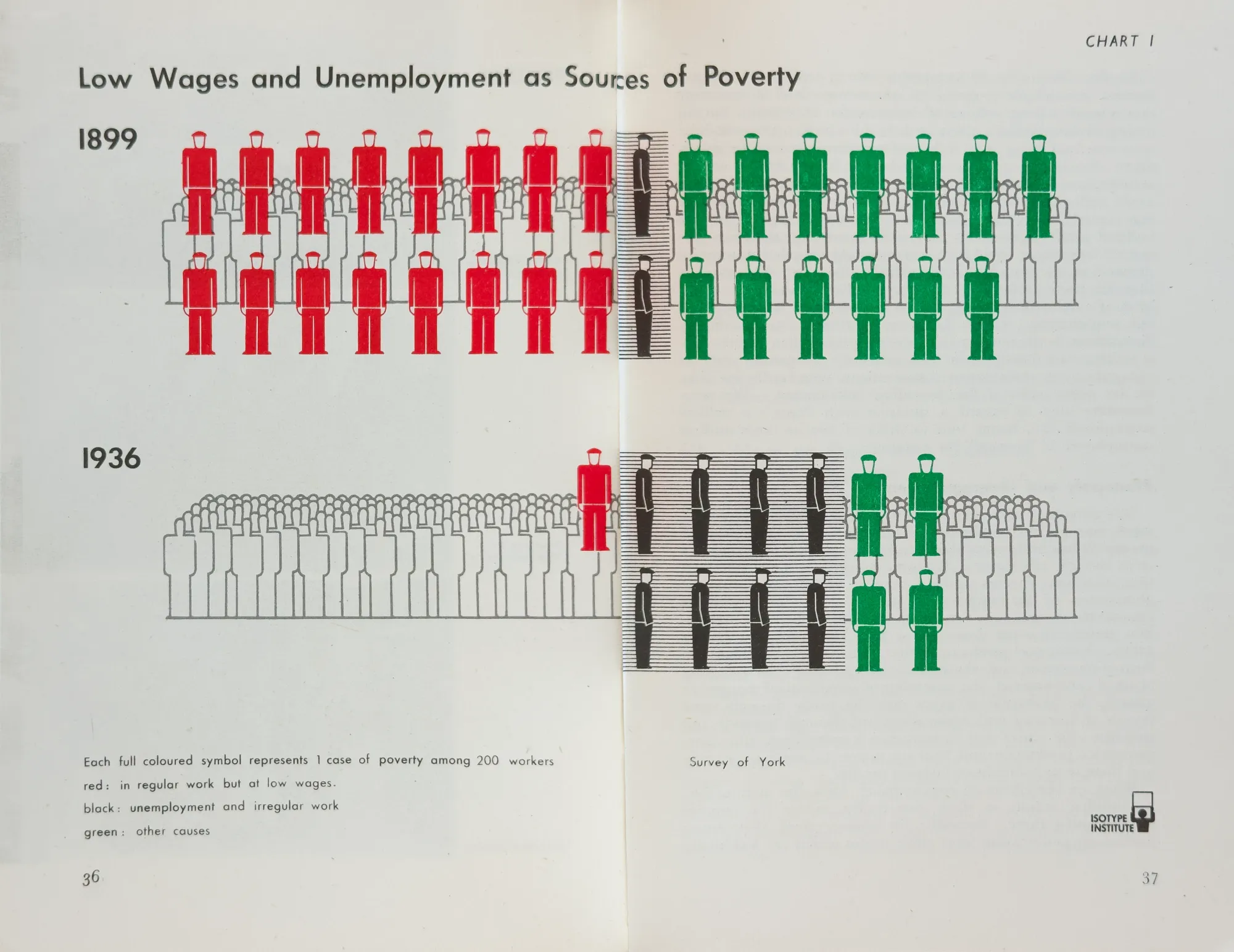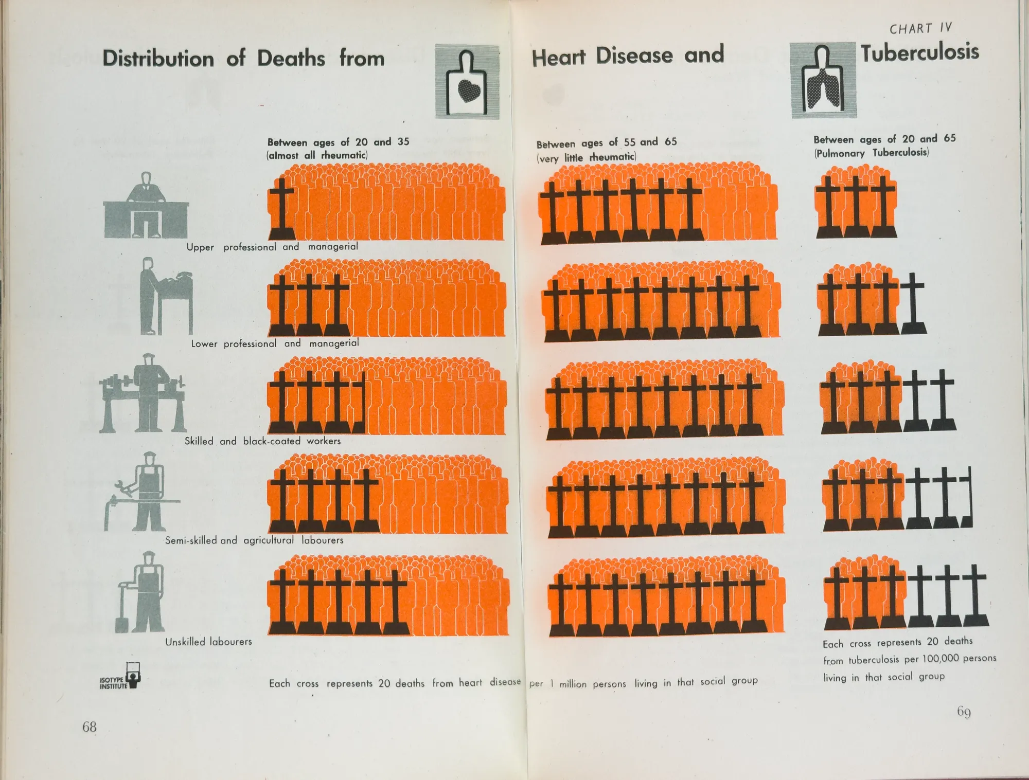 Een fantastische collectie isotypes bijgehouden door RJ Andrews. Social-wetenschappelijke data weergegeven met symbolen, in dit geval voornamelijk uit de jaren β40 ππΌ