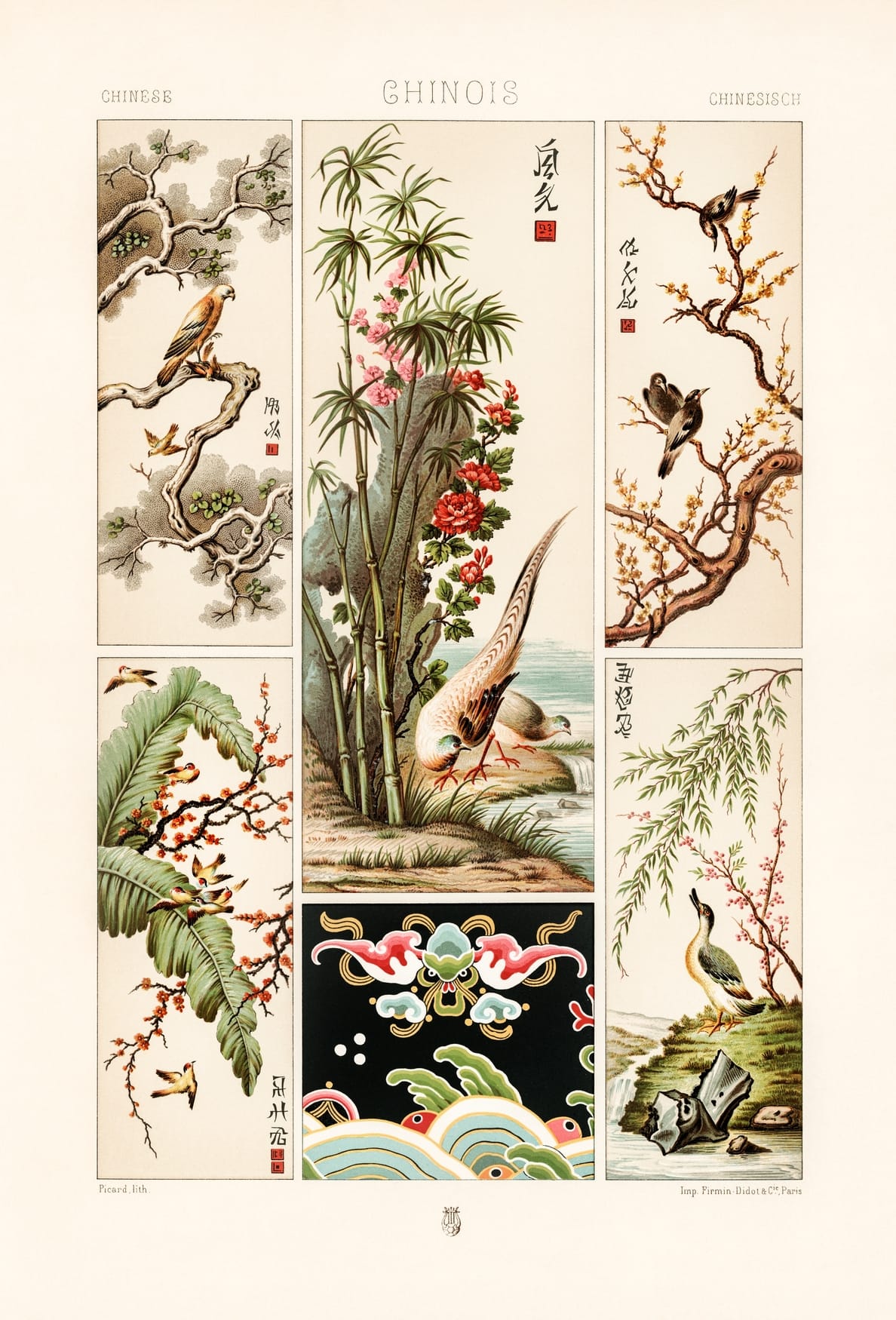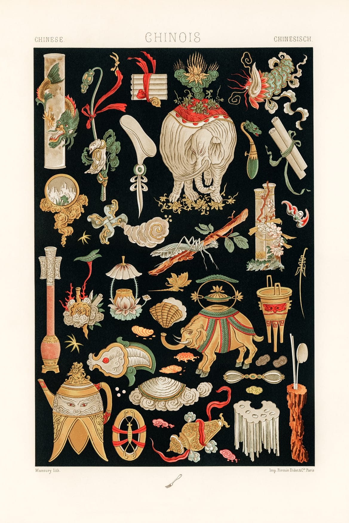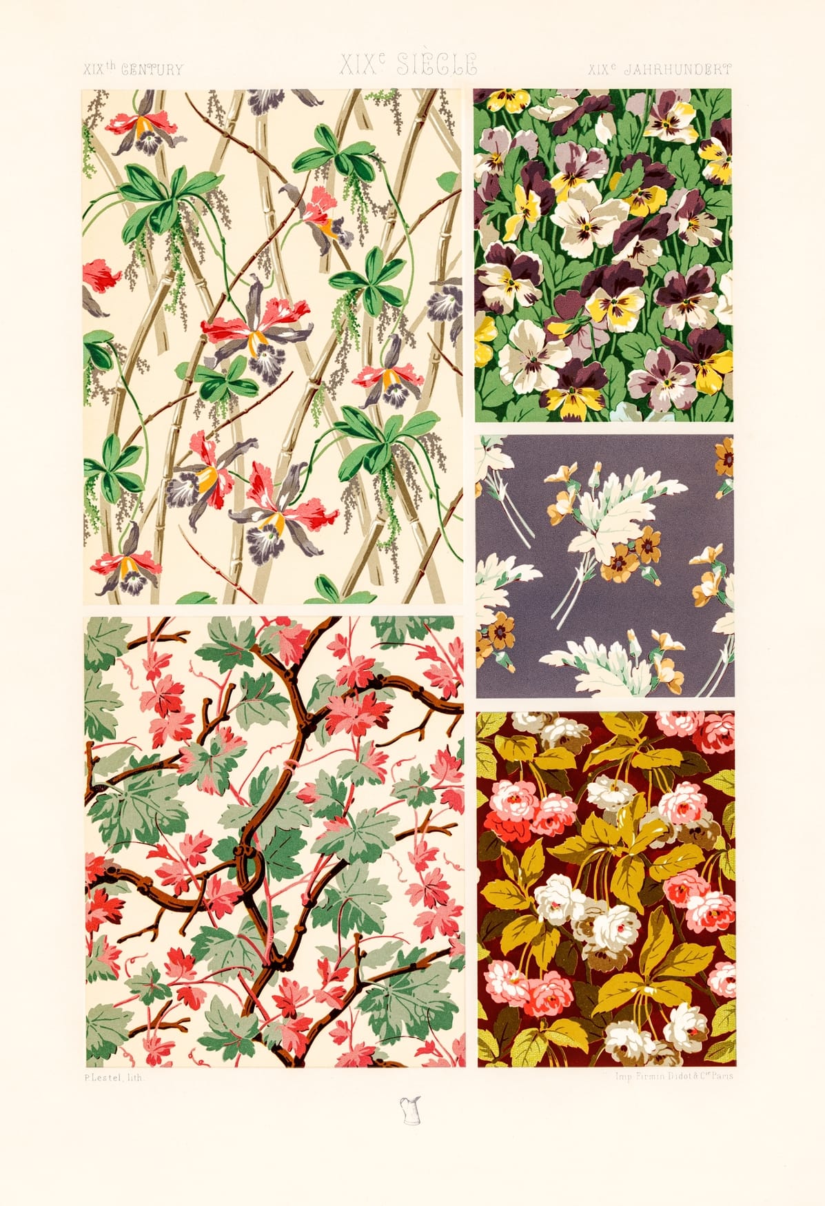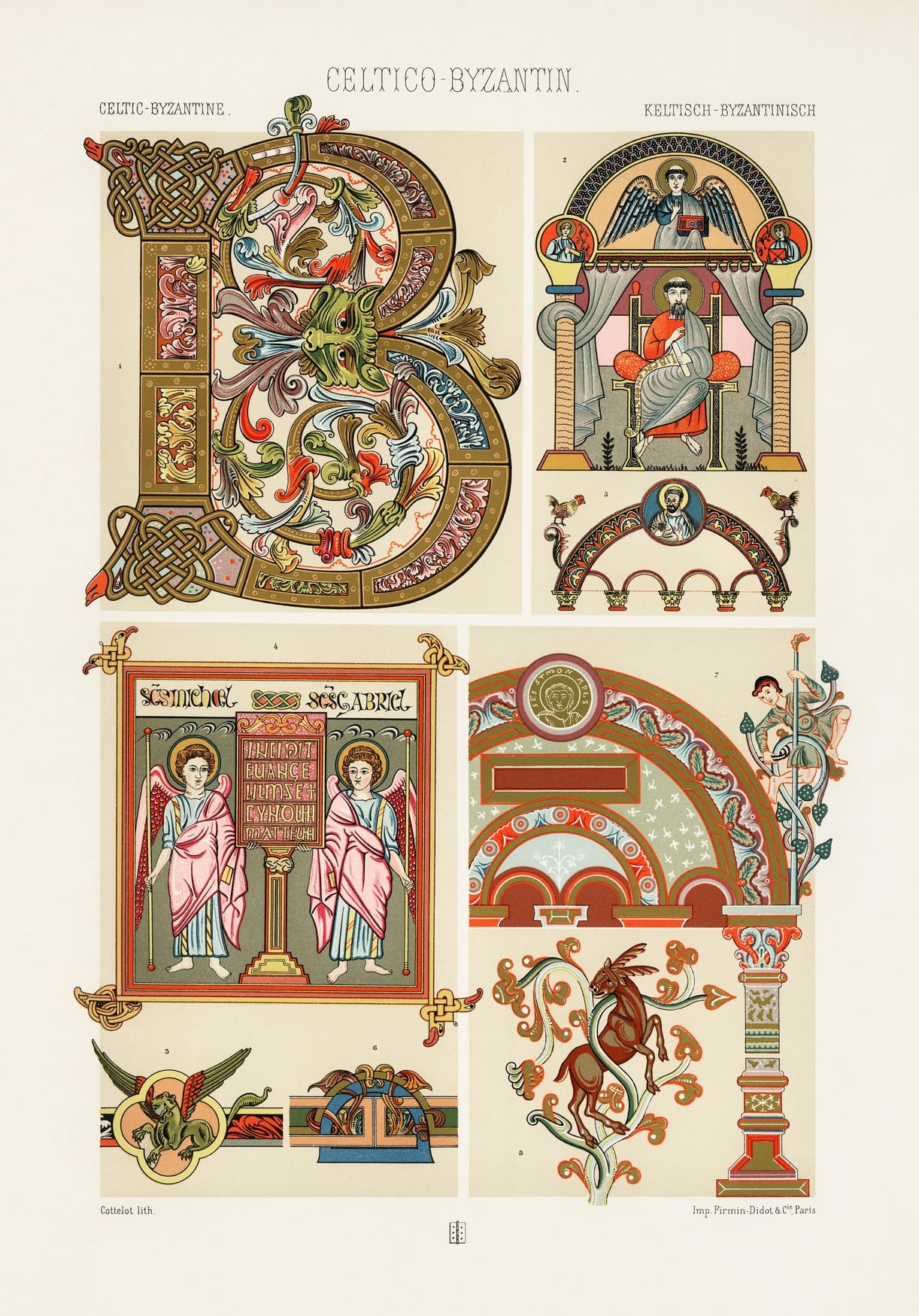 Ruim een decennium na Owen James’ Grammer of Ornament maakte ook Albert-Charles-Auguste Racine tussen 1869 en 1873 tien overzichtswerken van de geschiedenis van design. Van het oude Egypte naar het verre Oosten en van de Romeinse tijd naar de Middeleeuwen; alles zat erin. En zo’n 150 jaar, vintage alert, later kun je er nog steeds digitaal van genieten bij de NYPL 👀