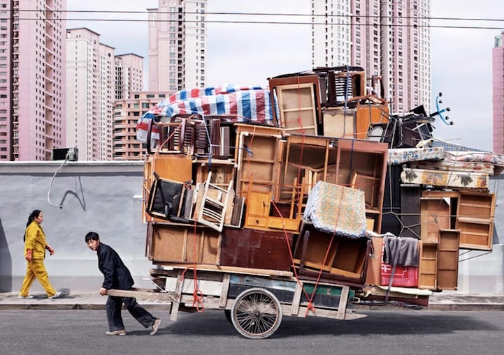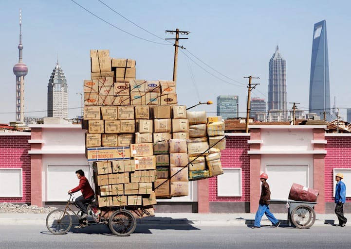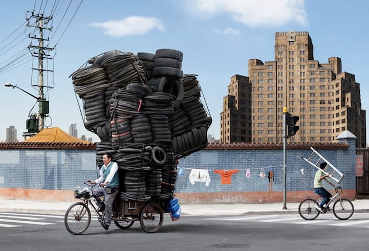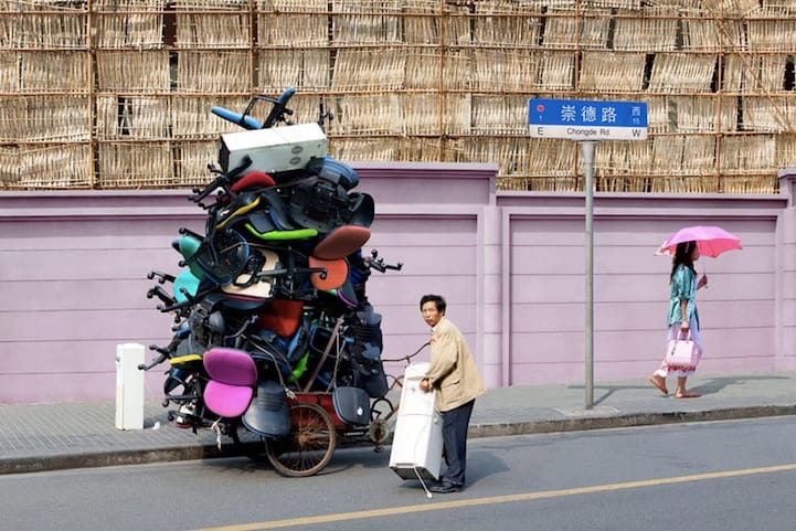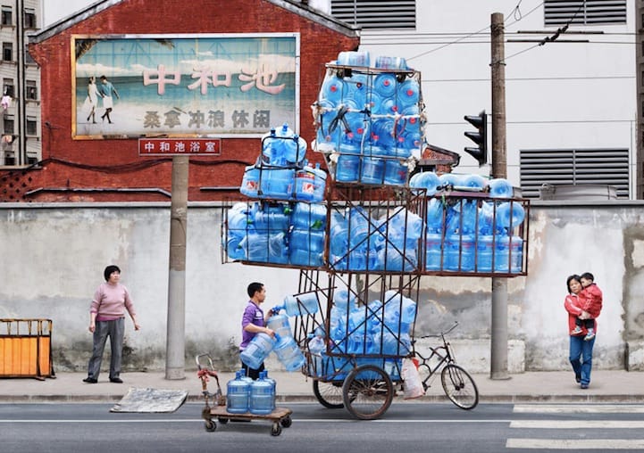 Dacht je dat jij al liep te klooien met tasjes van de Appie op je stuur op zaterdag? Een fotoserie van Alain Delorme, “Manufactured Totems”, laat zien hoe inventief Chinezen zijn met het bepakken van fietsen. Dat zijn nog eens toffe platen.