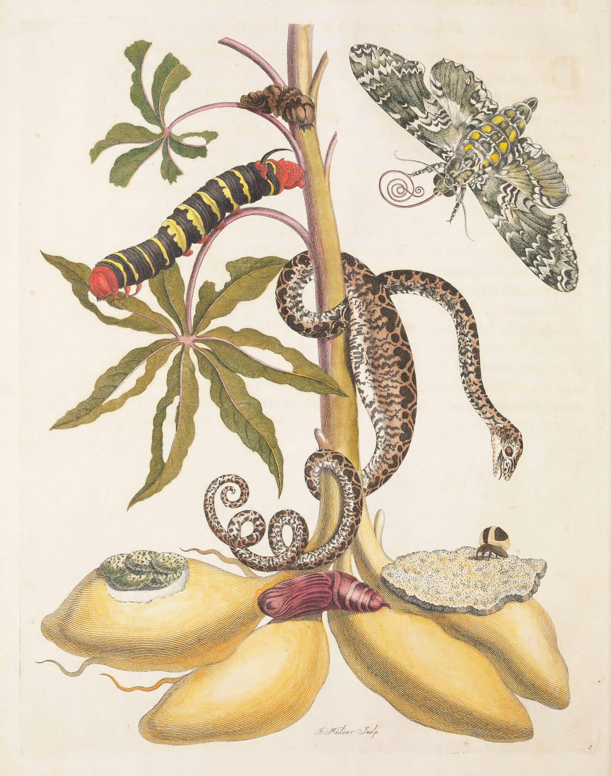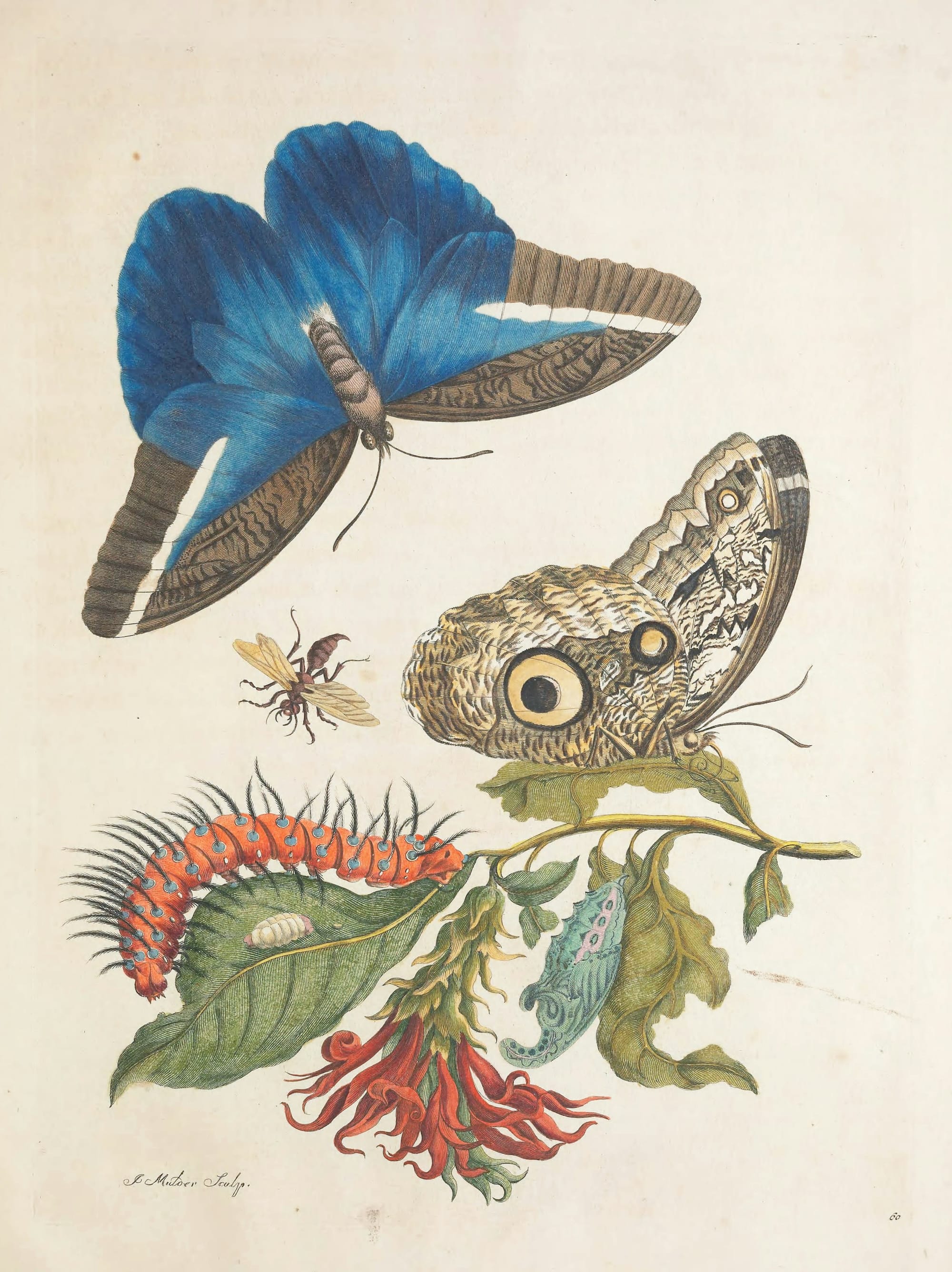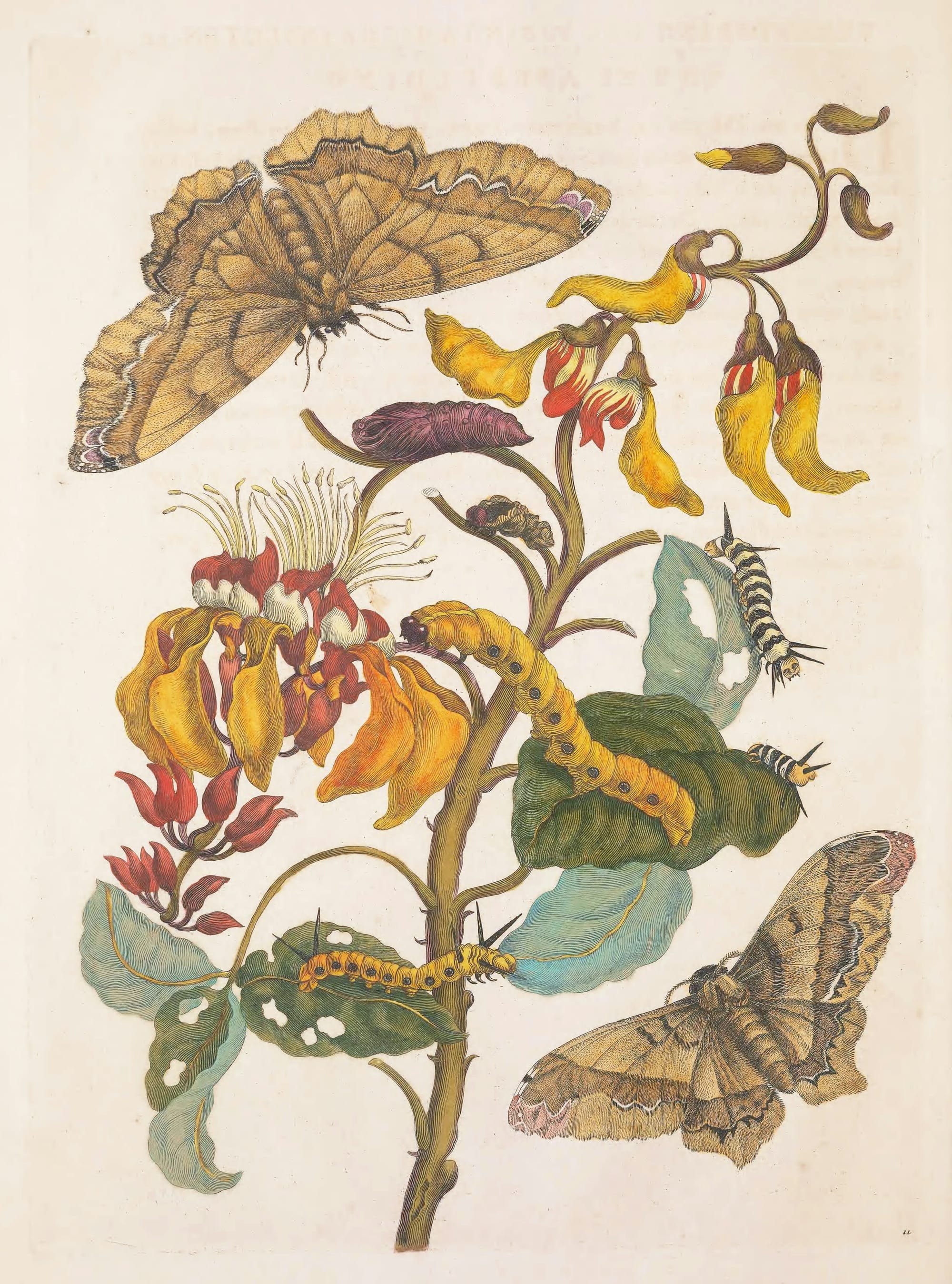 Blijkbaar zit ik nog steeds in m’n vintage illustraties era, want weer aan het genieten van deze insecten getekend door Maria Sibylla Merian rond 1705.