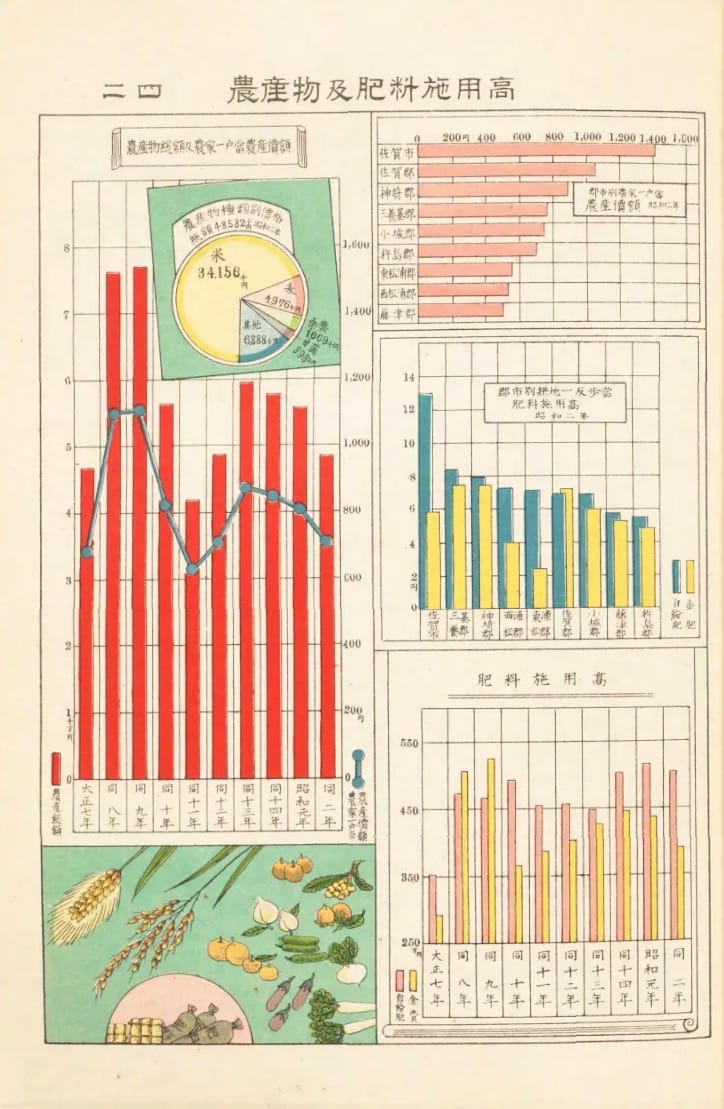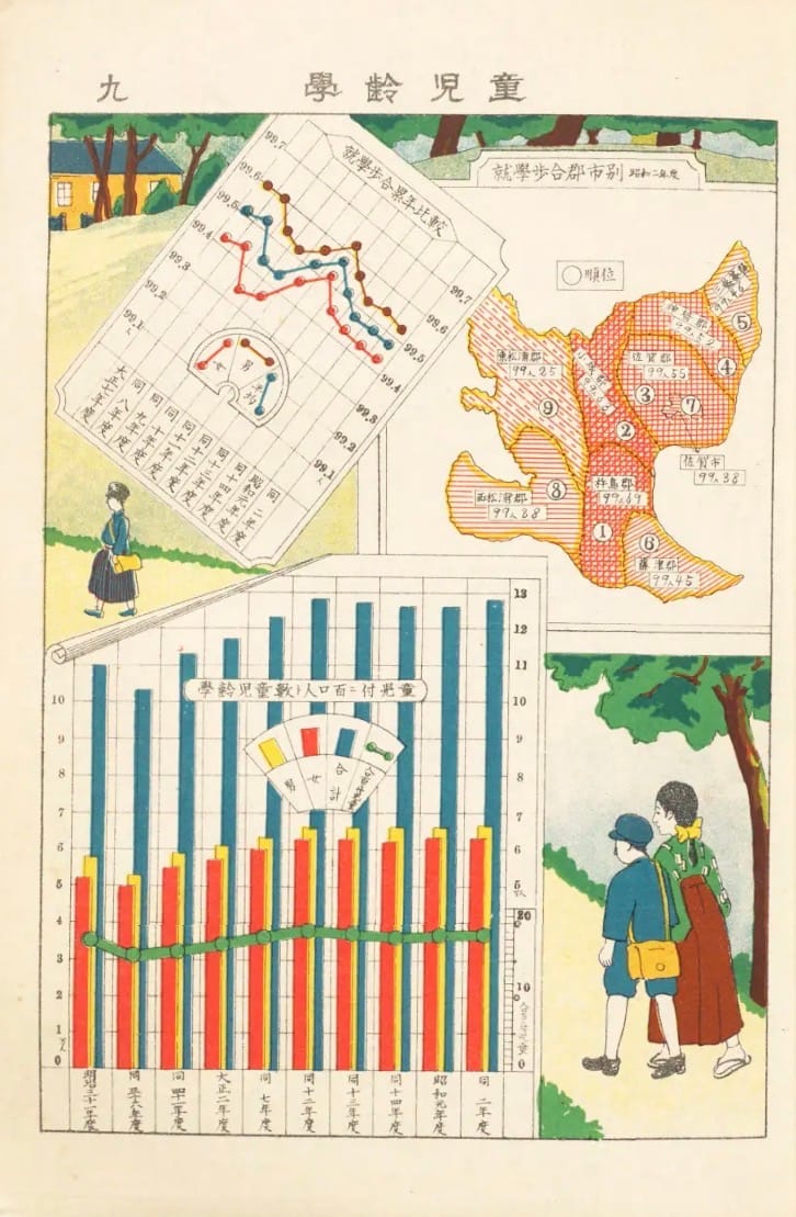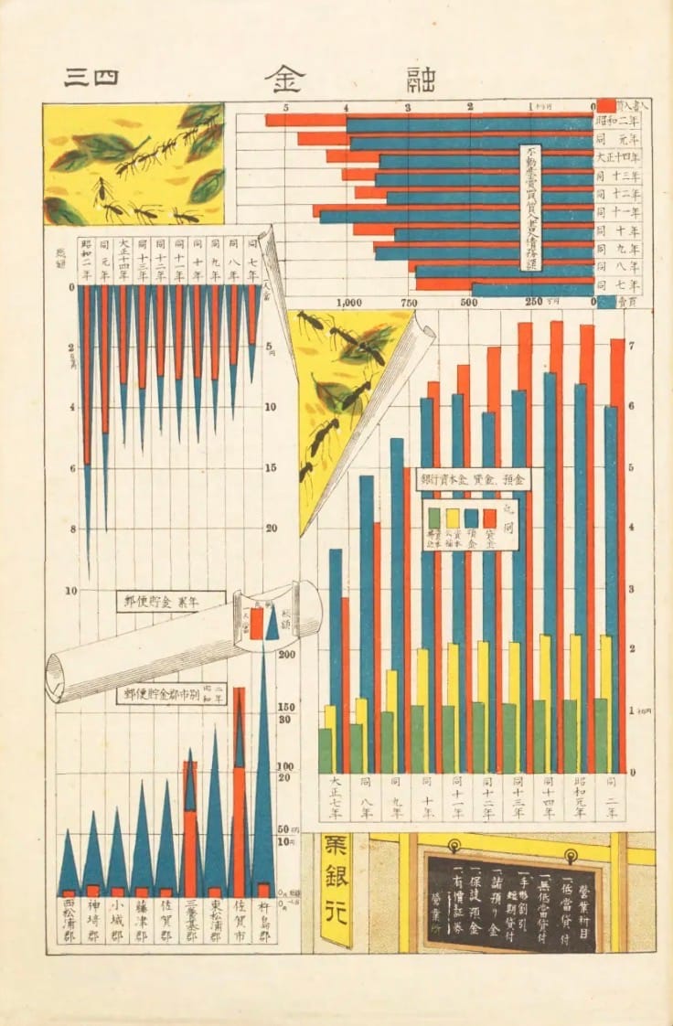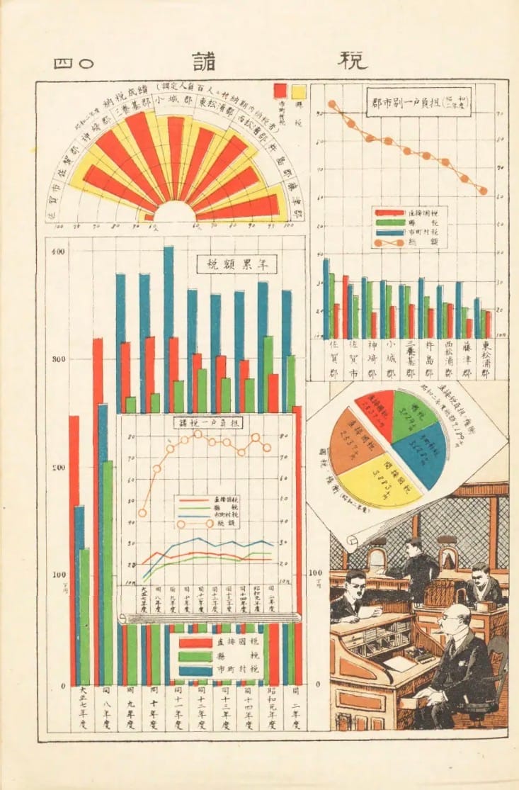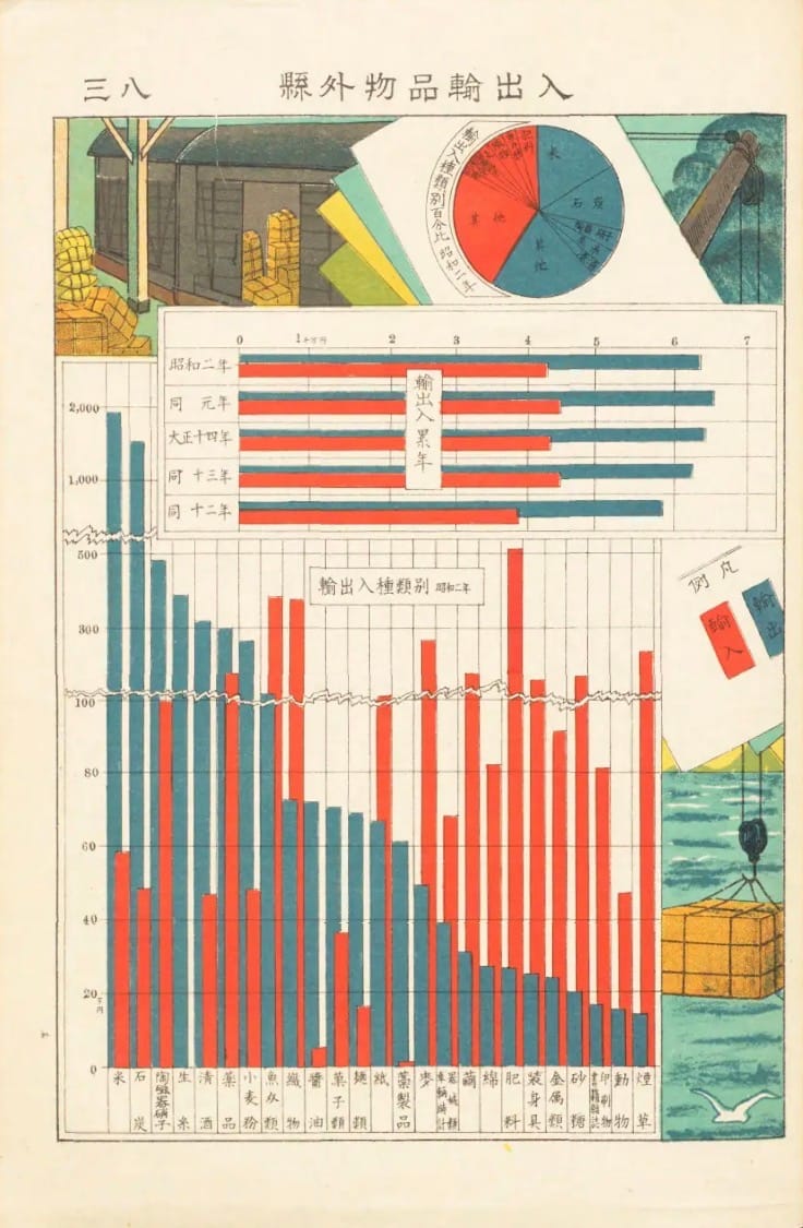 Vandaag weer even lekker verzopen in de NDL van Japan. En dan vooral omdat ik de term 統計図 heb geleerd. Japans voor statistische grafiek En daar hebben ze er een heleboel van. Veel uit de jaren 1920, dus de een nog mooier dan de anders. Even kijken.