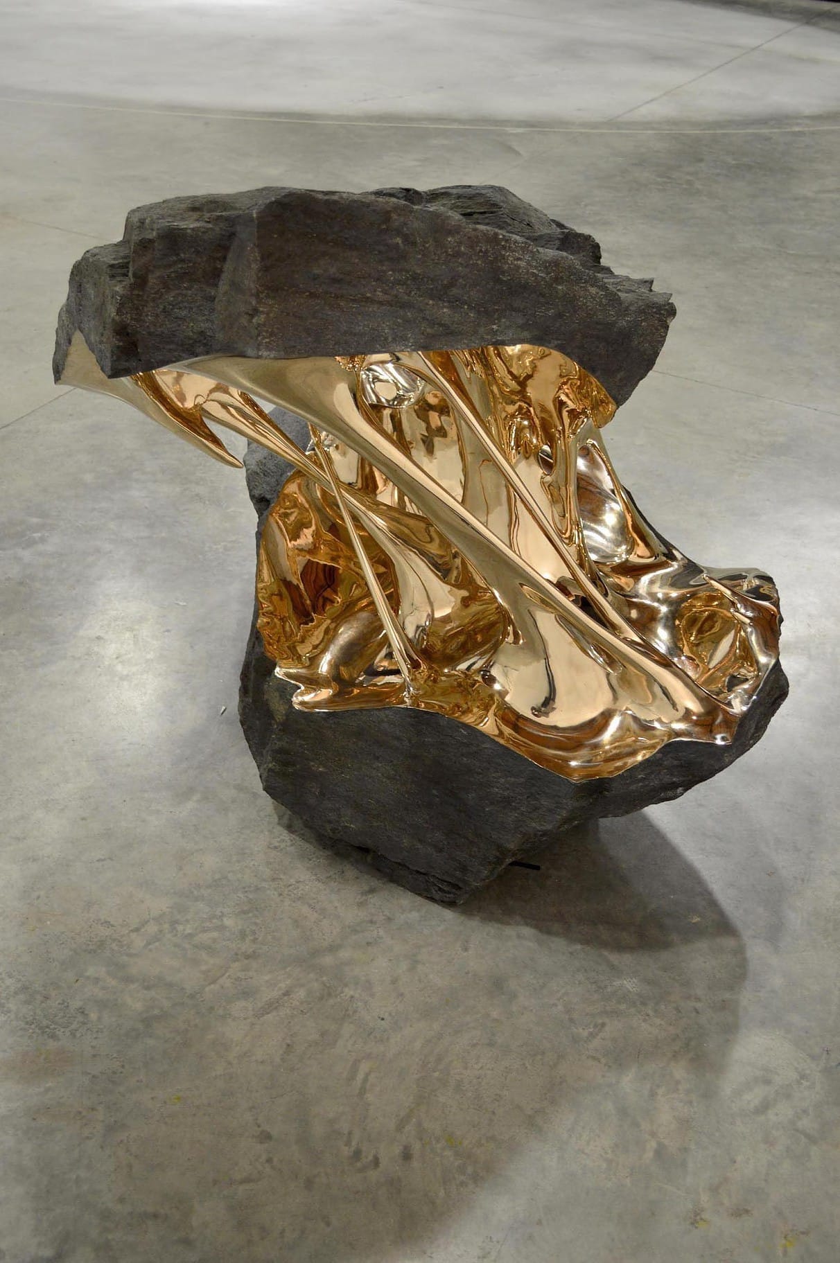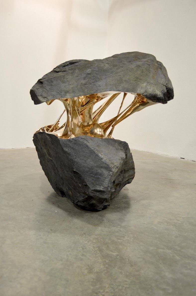 Prachtige sculpturen van Romain Langloi. Gezien het prijskaartje - je tikt zo een paar duizendjes af voor een klein werkje - valt het onder de noemer kunst, maar dan heb je wel opengespleten stenen waar goud uit druipt in je woonkamer staan. Om het beeldend uit te drukken. Watertanden.