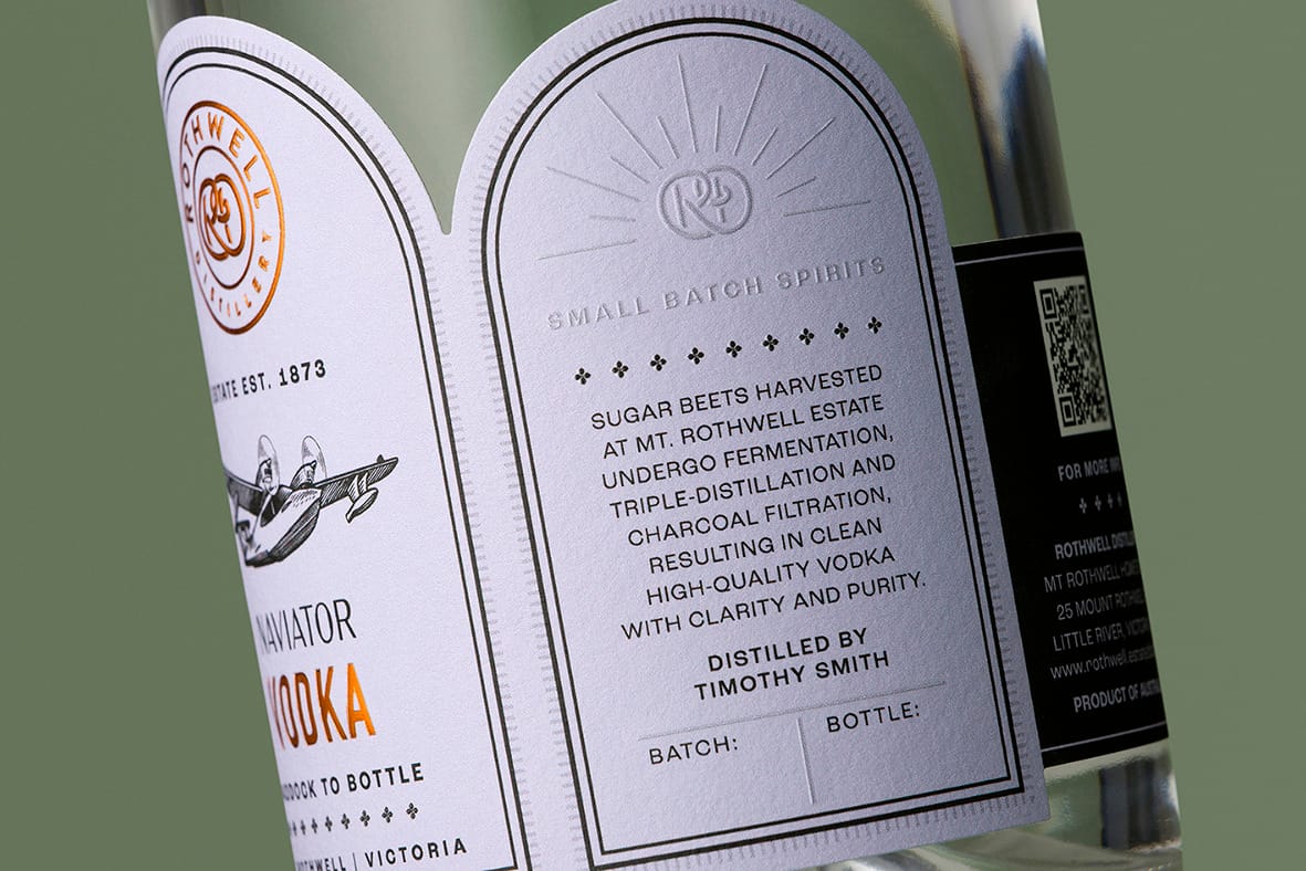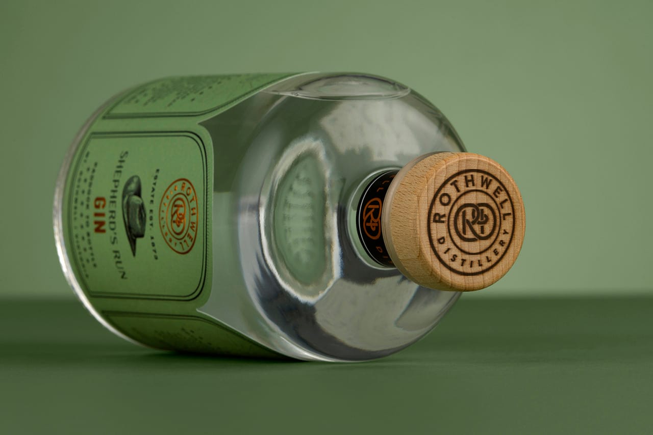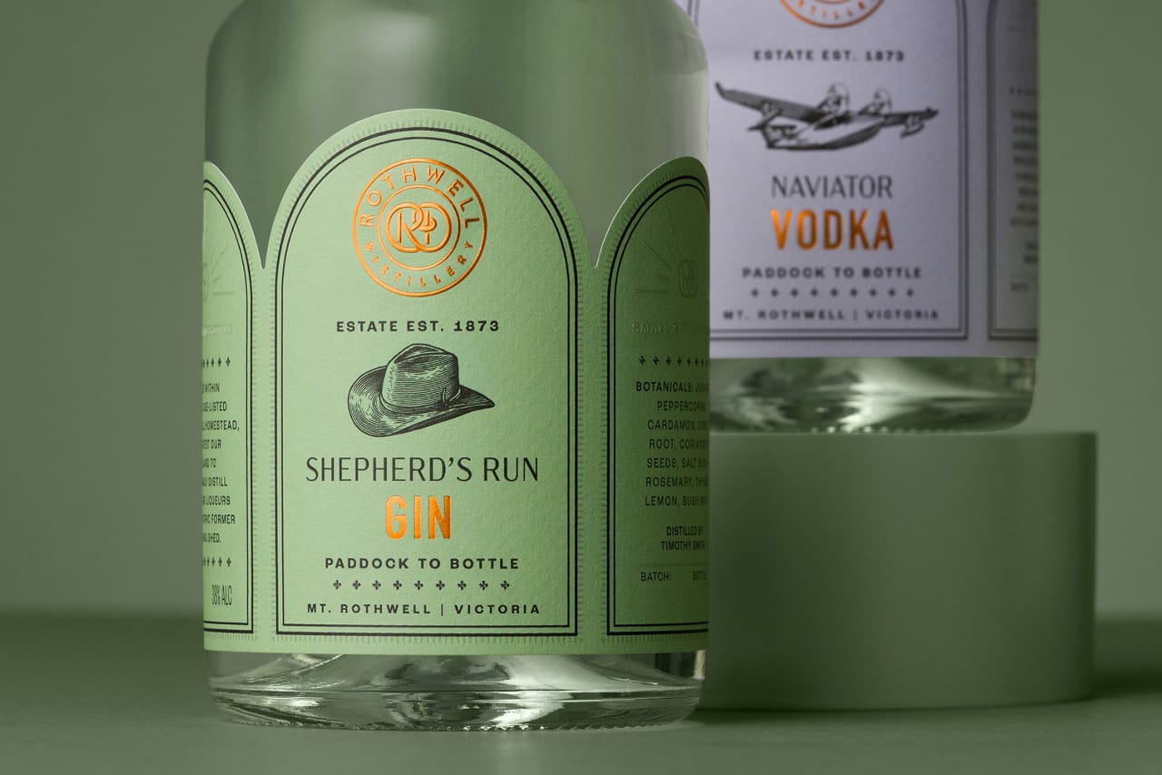 Heerlijk soothing labels voor deze gins en vodka van de Rothwell Distillery. Het voelt lekker 1920, maar dan in een 100-jaar-later-jasje.