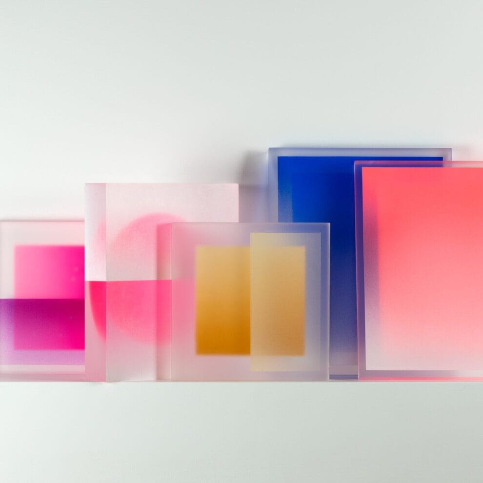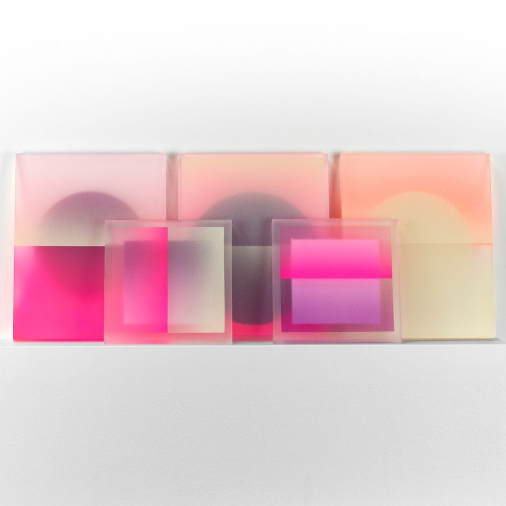 Waanzinnig lekkere geometrische verkenningen van Rutger Paulusse. Acryl met soft toned neons om je vingers bij af te likken.