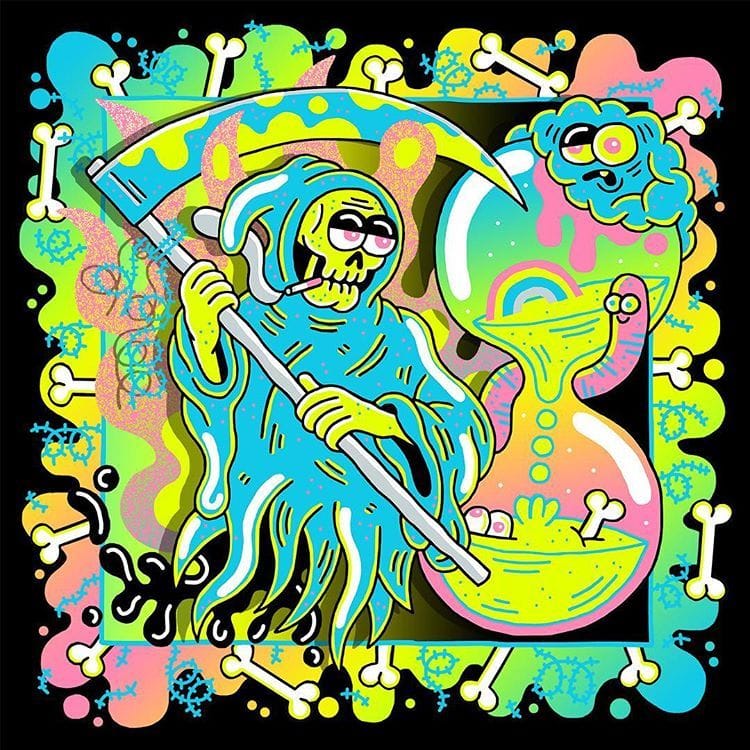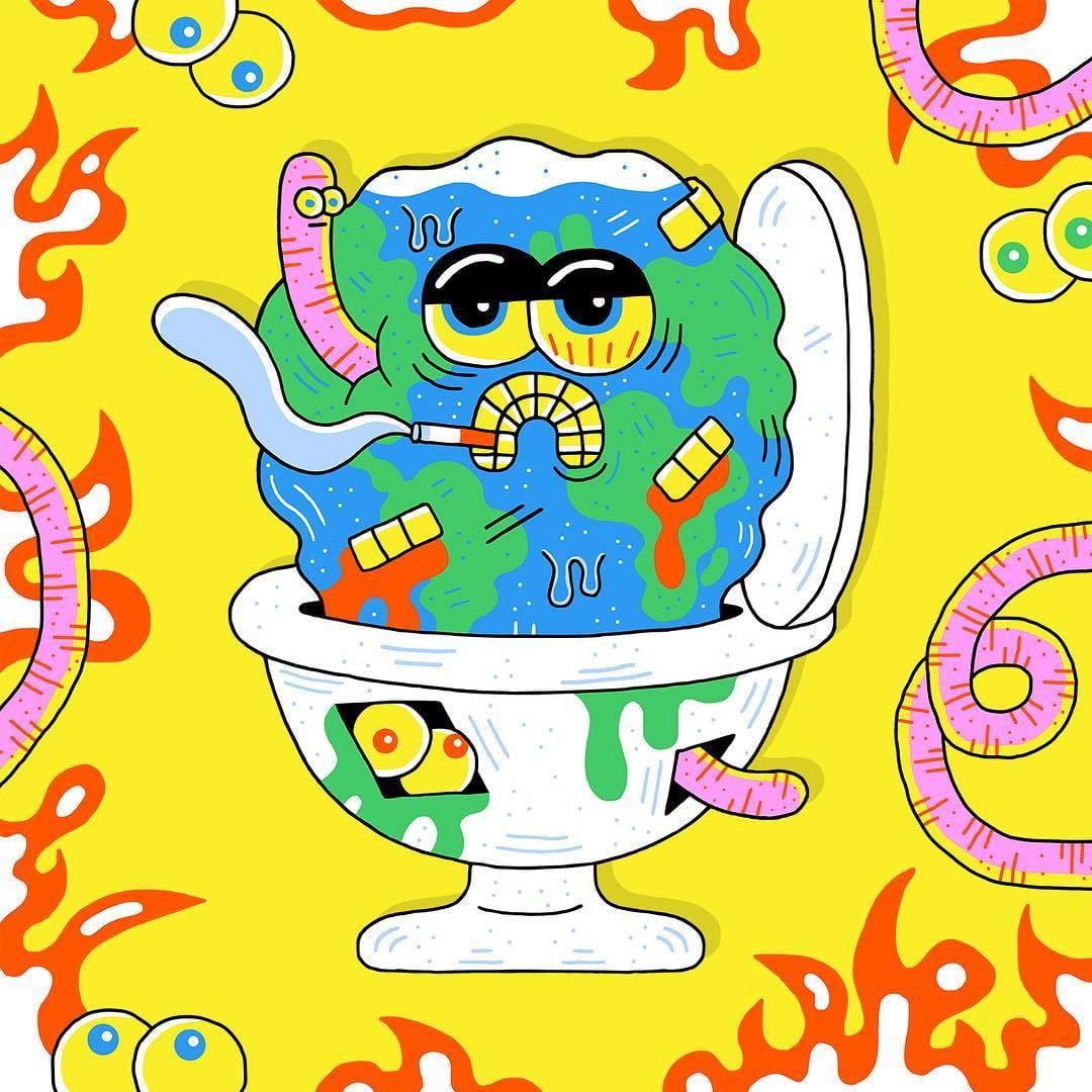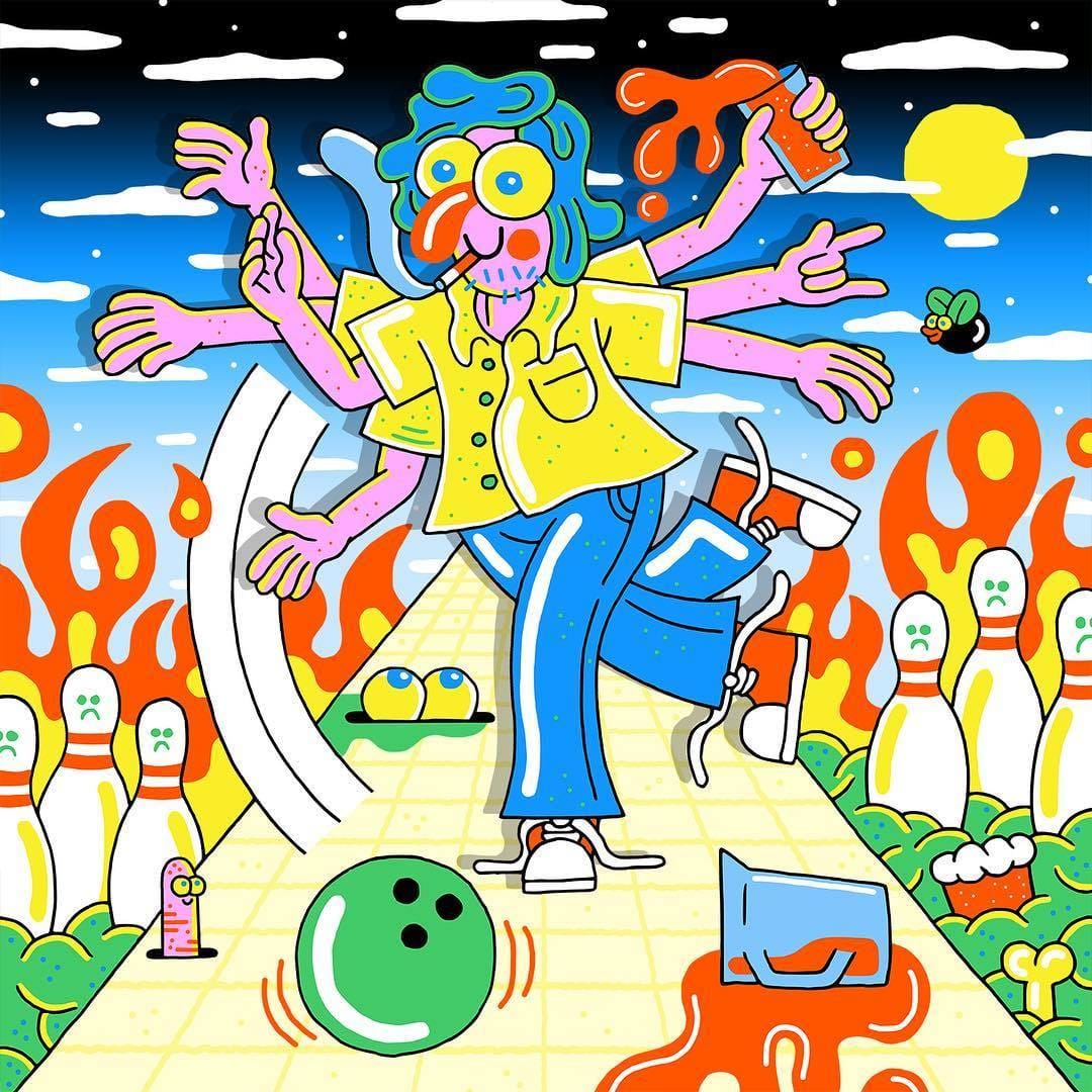 Drawings on acid, als je het toch een naam moet geven. Knalt zo je netvlies op, dat werk van Sam Taylor.
