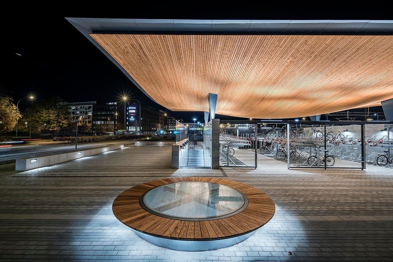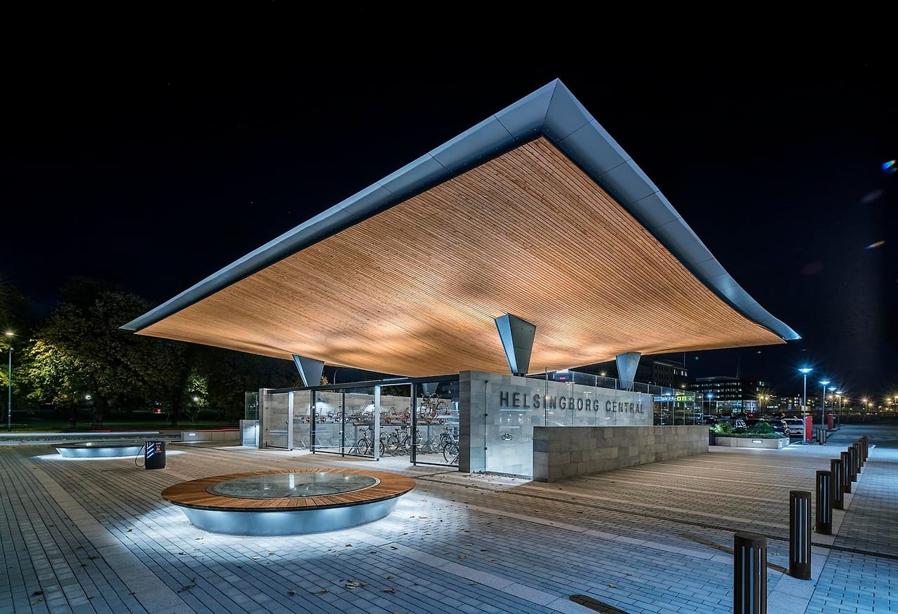 De awesome stationsentree in Helsingborg vastgelegd door Felix Gerlach. Superstrak, prachtig hout en spot on verlichting erbij.