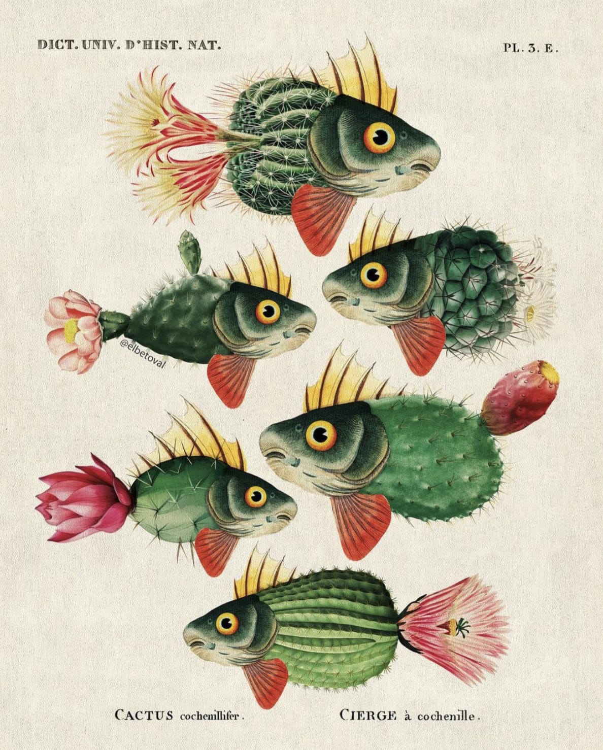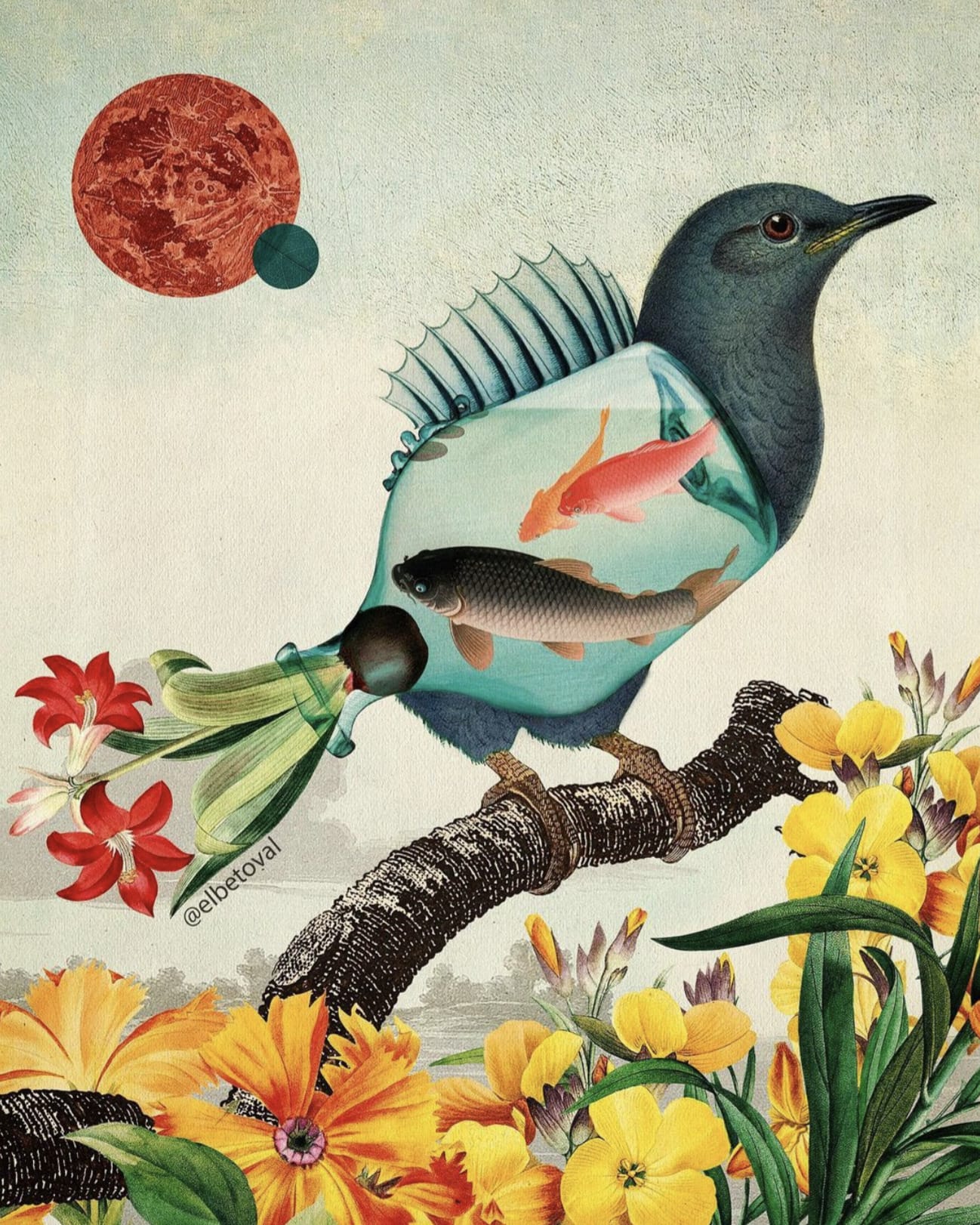 Als fan van vintage illustraties zijn deze surrealistische mix ‘n’ match versies van Beto Val ook niet verkeerd. Bloemige vissen en vissige bloemen, pretty.